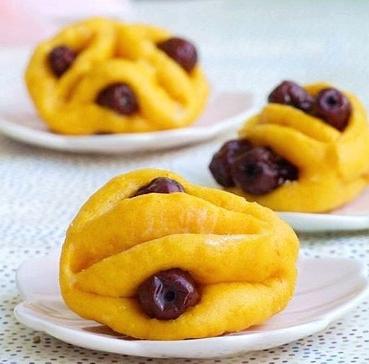 南瓜泥加入面粉和酵母,揉成与平时做馒头程度差不多软硬的面团,醒发至二倍以上大。