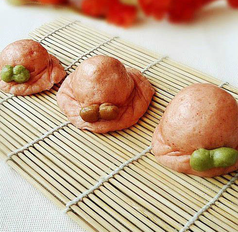 10、另取一个剂子分成四等份并搓成长条状,做成“小螃蟹”的腿。