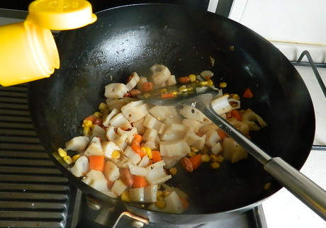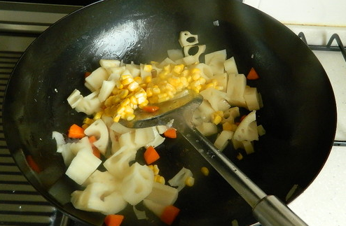 4.再把速冻玉米粒扔进去一起炒