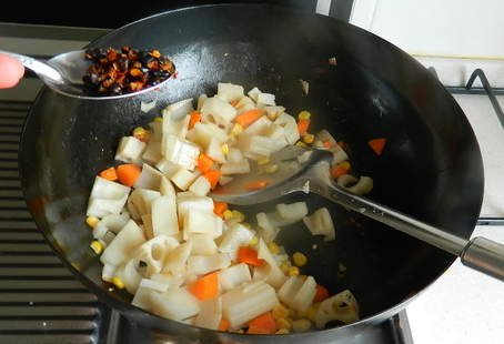 5.加进去1勺辣豆豉,怕辣的可以少放