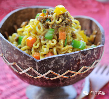 非油炸的方便面1包 ,牛肉馅60克 ,彩椒半个 ,西芹1根 ,胡萝卜1小块 ,香葱1根