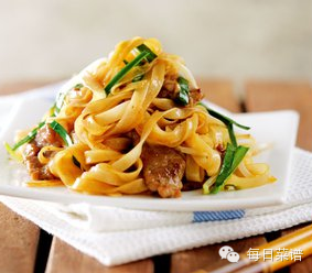 5锅洗净后擦干水,烧热后倒入凉油,马上把河粉,洋葱丝,姜丝和绿豆芽放入,用筷子轻轻搅拌着翻炒3分钟(会颠锅最好,以免把河粉搅碎),炒至河粉9成熟。
