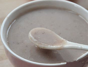 原料:地瓜70克、山药70克、米饭70克、黑芝麻粉2茶匙、白糖5克