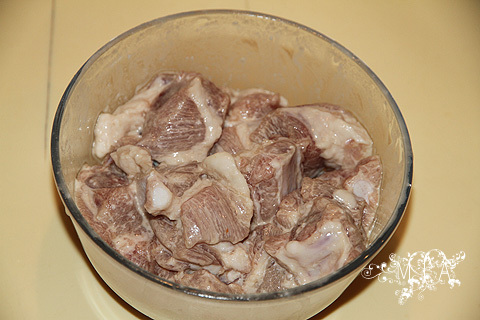 1. 排骨剁小块,加入适量盐、淀粉、花雕酒和姜汁抓匀,腌制一会儿入味。