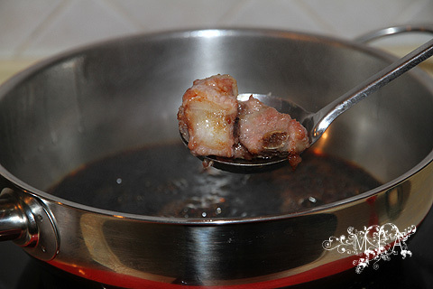 1. 锅内热油,中火将排骨炸至略上色,捞出沥去油。