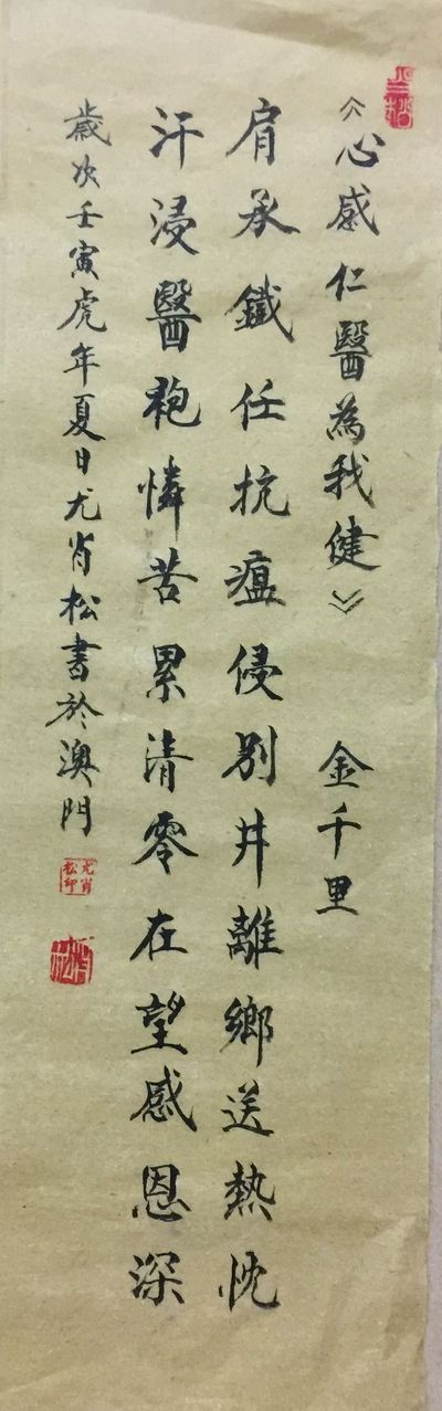 心感仁医为我健(文/金千里,书法/尤肖松)