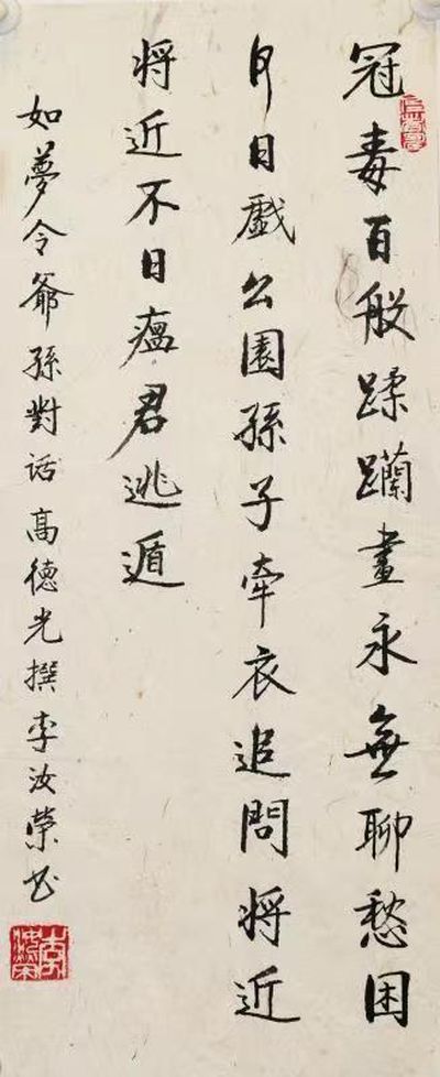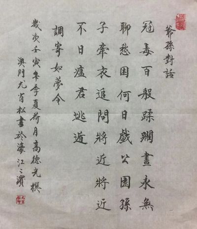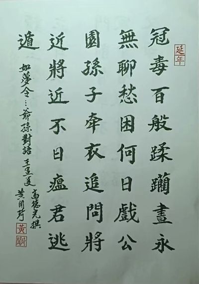 如梦令……爷孙对语(文/德光,书法/尤端阳,李汝荣,黄闻琦,阮伟生,练子明,尤肖松)