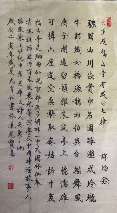 福山寺是缅甸(古称骠国)仰光市茵雅湖(华人称燕子湖)畔一中式园林,供清水祖师。园内有朱波、晨光等凉亭及中国神话故事人物的塑像等,上世纪中叶是华文诗人喜聚会之地。80年代,我多次到福山寺玩,孤独一人阅读亭上的律诗。