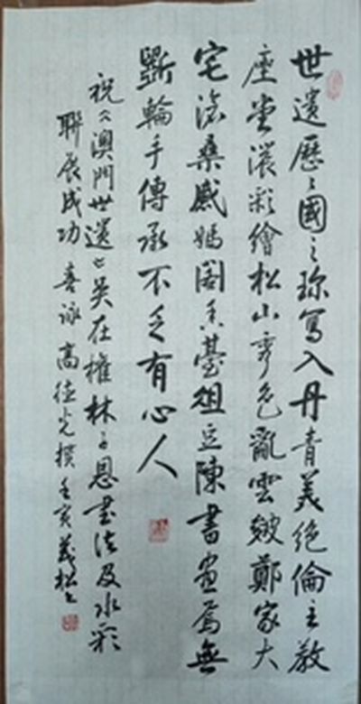 祝“澳门世遗”吴在权林子恩书法及水彩联展成功喜咏