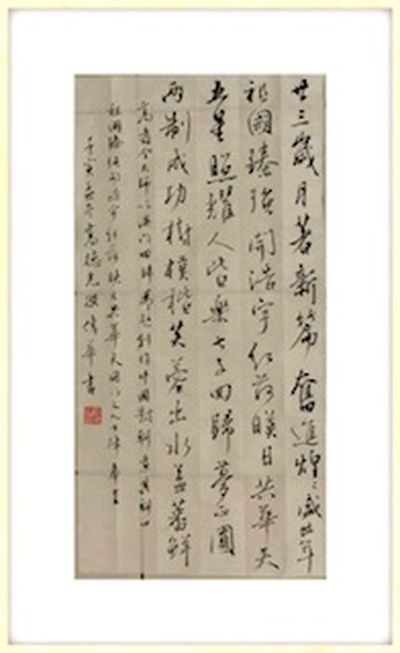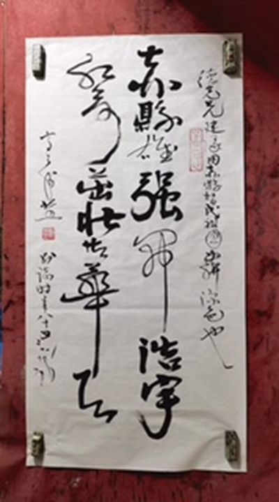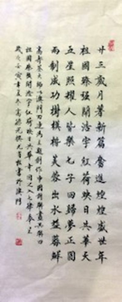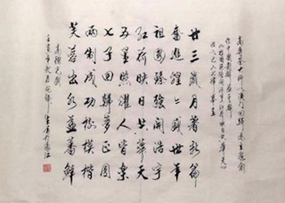 高寿荃大师以澳门回归为主题创作中国对联画,其联曰:“赤县雄强开浩宇,红荷茁壮共华天。"因以之入七律奉呈。