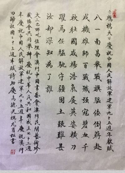 鹧鸪天……庆祝中国人民解放军建军九十五周年献赋