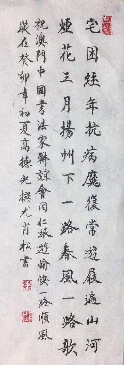 祝澳门中国书法家联谊会同仁旅游愉快一路顺风