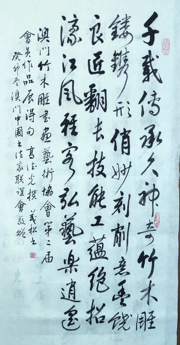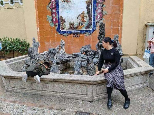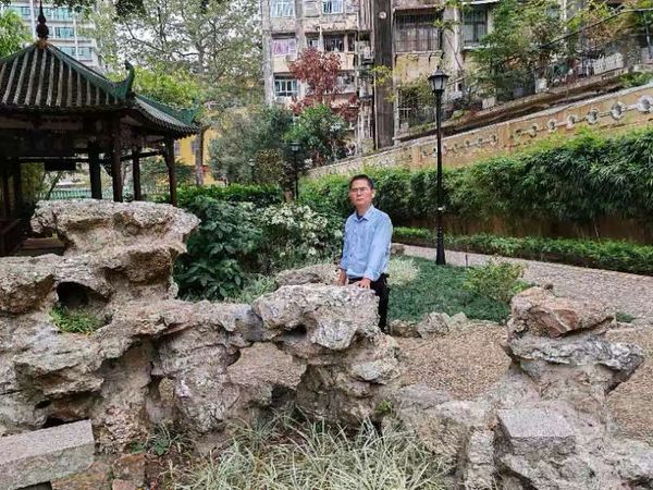 注:中山诗词楹联学会副主席邹优添兄日前莅澳同游卢九公园。