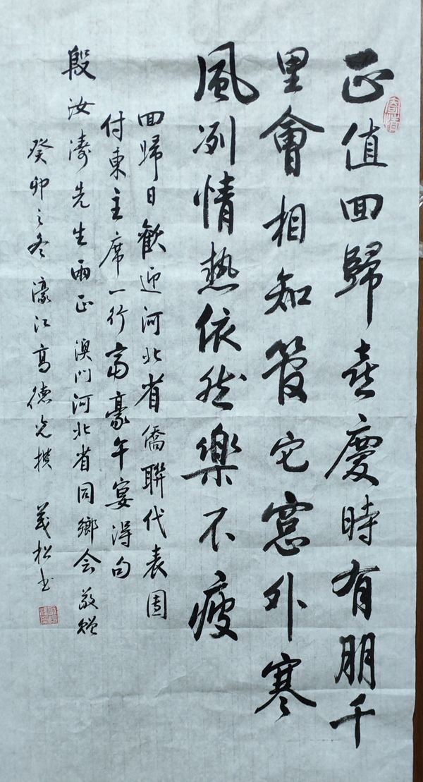 回归日欢迎河北省侨联代表团付辉东主席一行富豪午宴上得句(文/德光)