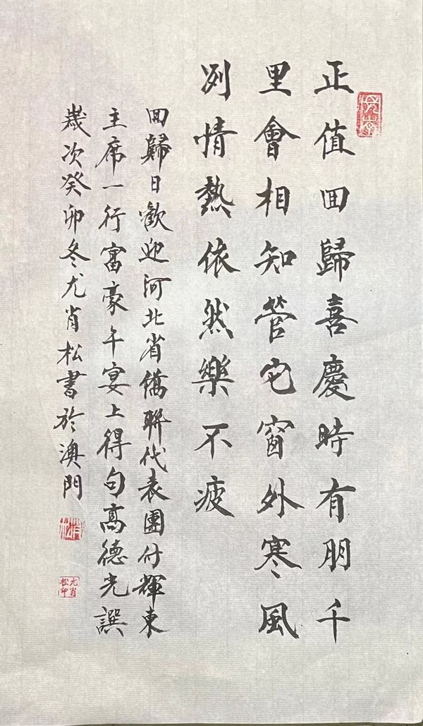 回归日欢迎河北省侨联代表团付辉东主席一行富豪午宴上得句