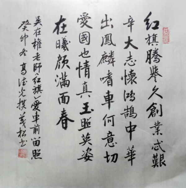 题吴在权老师《红旗》爱车前留照