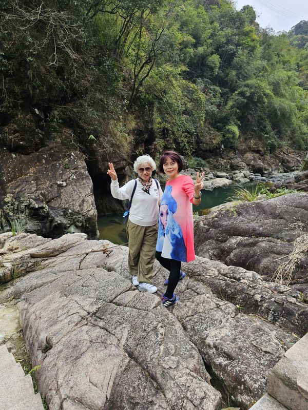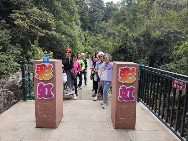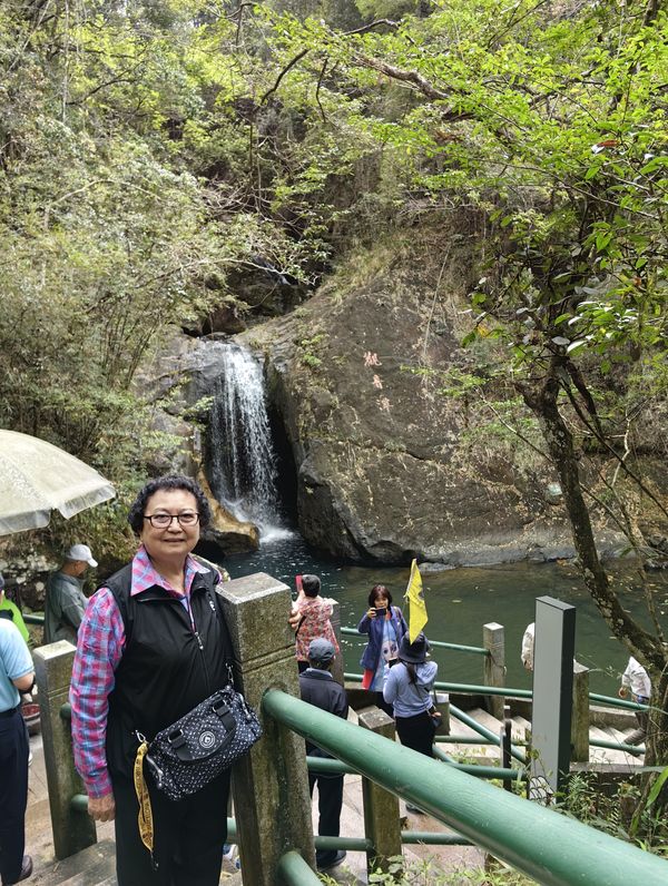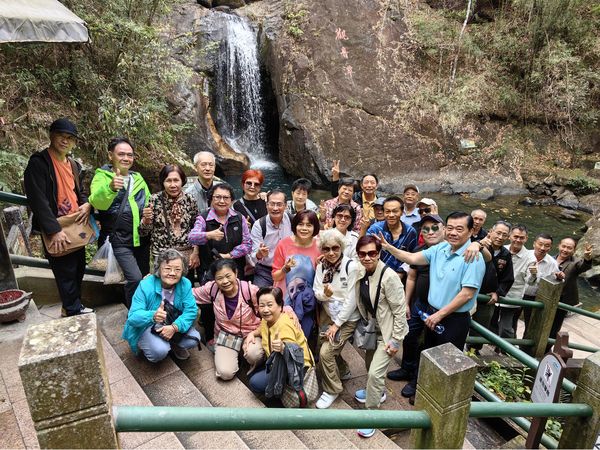 瀑布边旁集体照,