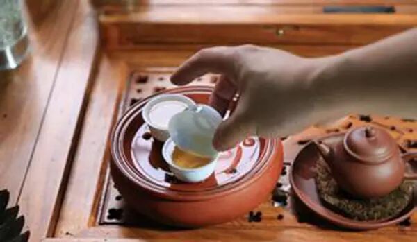 1、温杯 用开水把准备好的干净的器皿再冲淋一次,一方面为了卫生,同时也是给盖碗、公杯、品杯加温。