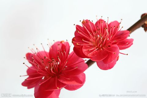 2、梅花。原产我国西南及台湾省,性喜阳光,又较耐寒。我国偏南地区露地栽种的梅花即可盛开。但在北方,多作盆栽观赏。通过温度控制,可使梅花在元旦、春季开放。
