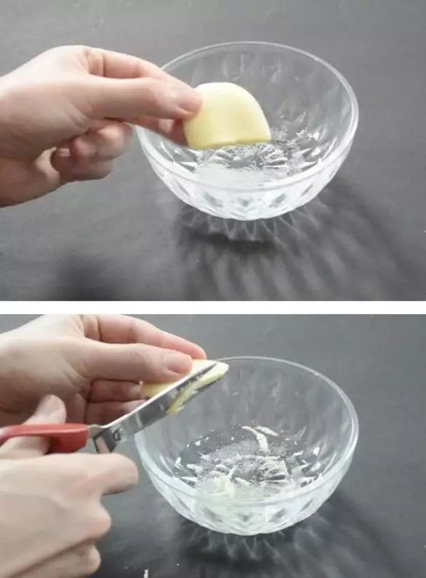 接着再往容器内剪一些肥皂头,并且搅拌一下。肥皂水是碱性物质,蚊子在碱性环境下是无法生存,从而能消灭蚊子。