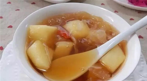 材 料:苹果1个、梨1个、银耳2朵、水适量