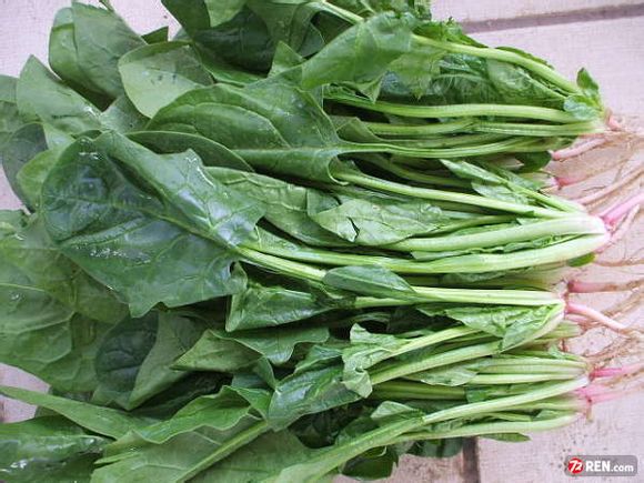 但在冬季,叶色泛红,表示经受霜冻锻炼,吃口 更为软糯香甜。菠菜消费的季节性很强,从10月至翌年4月历时半年均有菠菜上市,早秋菠菜有涩味(草酸含量高),晚春多抽薹。一般以冬至(12月下旬)到立春(2月上旬)为最佳消费期。有时会看到菠菜叶子上有黄斑,叶背有灰毛,表示感染了霜霉病。当然要挑没病的买。