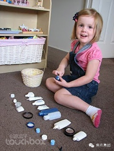 家里不用的小瓶子,小盒子 一 定很多吧,把它们的瓶盖和瓶身分开, 让孩子们自己去进行配对,很培养孩子的细心观察能力。