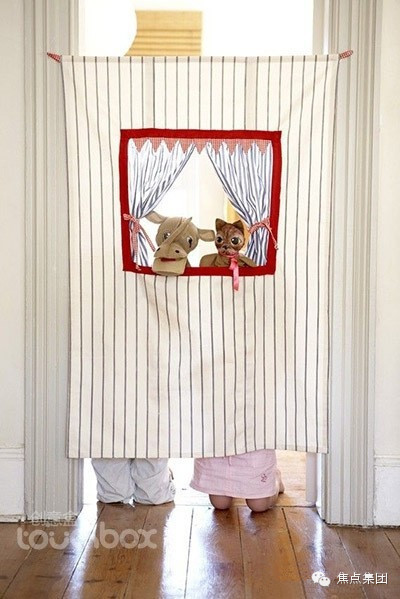 12. 家庭小剧场:找一块床单,diy成一个简单的小幕布,让孩子们带着他们的小手偶来进行绘声绘色的表演吧,要鼓励他们尽情想像来创造吧,其乐融融的家庭亲子时光,多美妙。