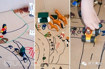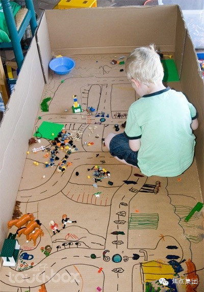 9. 大纸箱游乐场:将家里不用的大纸箱取出来,让小朋友自己来绘制一个游戏场,将小脑袋里想像的情景都实现出来,再把乐高小人或者小玩偶都拿来,在自己创造的游戏场里玩情景游戏,充满乐趣。