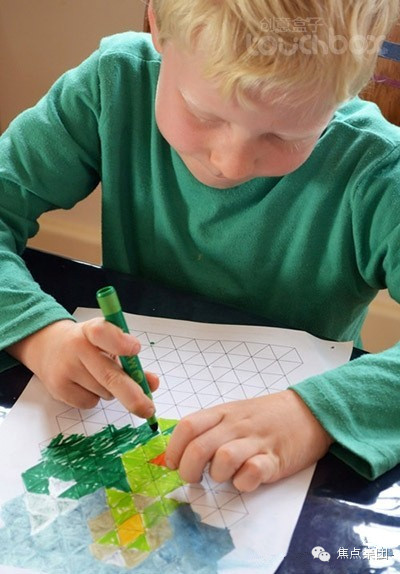 10. 画图案:打印出来一些具有相同图案的纸(可以是不同的圆,三角形或者任意形状),和孩子一起用不同的图案或者花纹去填充,思考+创造,非常推荐这个有创意的游戏。