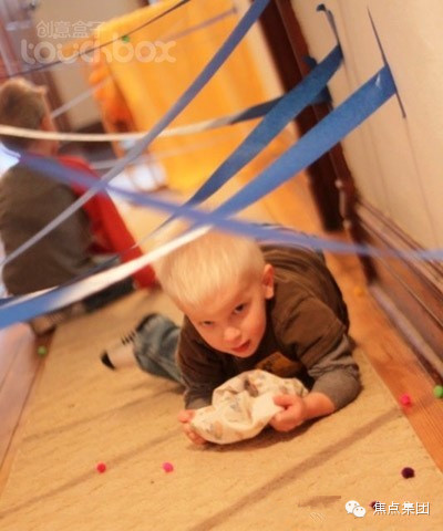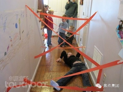 3. 穿越障碍:找一个过道,左右两边贴一些纸条作为路障,孩子们需要身体不接触路障而顺利通过,充满刺激的小游戏,很适合家庭聚会哟。