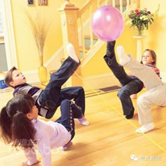 4. 击球比赛; 这个游戏适合多个孩子一起参加,注意要用脚去击球,很锻炼孩子们的身体协调能力。