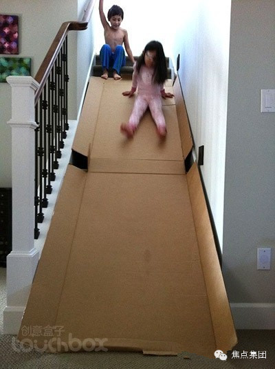 2. 纸箱滑梯: