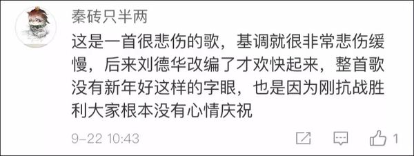 听一下原版就会发现,里面中没有电声乐器奏出锣鼓喧天的热闹,仅有一把吉打伴奏,轻拨和弦弹着哀伤忧郁的小调,让人放佛回到了那个硝烟还没有散尽的年代……