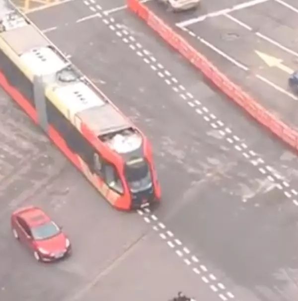 智轨电车外形酷似有轨电车,却不用钢轨和管线,其采用了“虚拟轨道跟随控制”技术。以车载传感器识别路面虚拟轨道,通过中央控制单元的指令精准控制列车行驶。