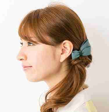 在侧马尾上面加上一个小巧精致的发夹,这款俏丽的侧马尾造型就完成了。