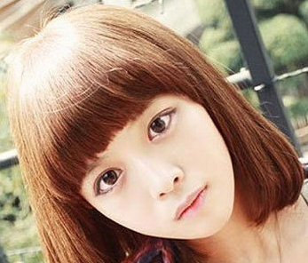 非常厚重饱满的一款女生中短发发型哦,齐刘海的造型是最佳修饰脸型的呢,喜欢的美眉们一定不要错过了哦,加上浅棕色的染发造型,将女生的肌肤衬托得白皙年轻了哦。