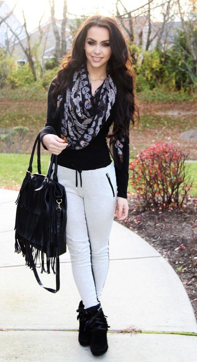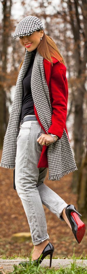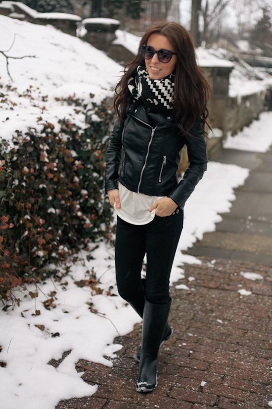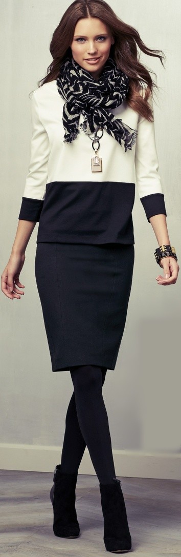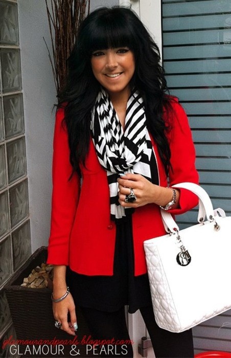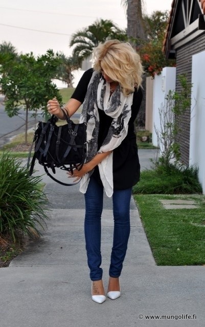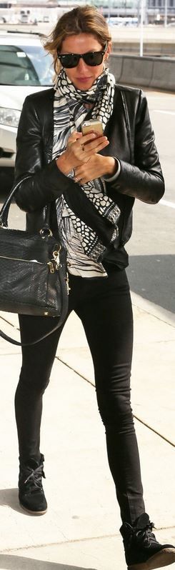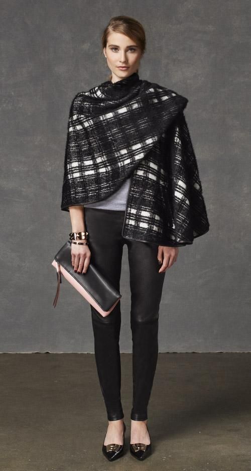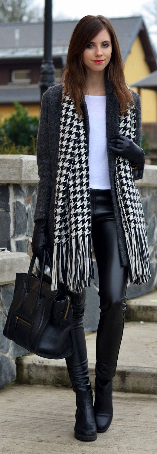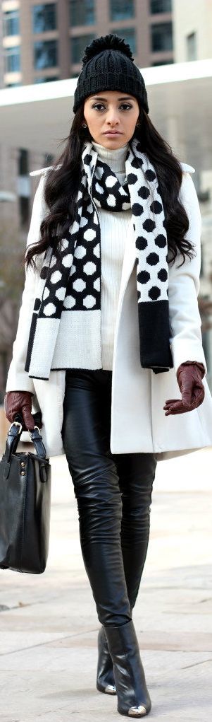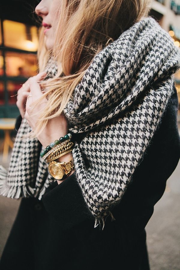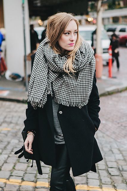 下面就带大家看一下,经典黑白大围巾的正确搭法: