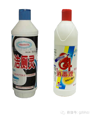 在84消毒液的外包装上标有不能与酸性清洁产品混用的字样,但多数并没有标清具体哪些清洁剂是酸性清洁剂。除了洁厕灵,小编知道的酸性清洁产品还有瓷砖清洗剂、浴室清洗剂等。而洁厕灵则不能与漂白剂等含氯化学品同时使用,否则就可能产生有毒气体。总之,最保险的做法就是,每次只用一种,并且注意保持通风!(切记,切记!) 但是,在超市中两类清洁用品又经常被放置在一起,使人很容易误认为二者可以搭配使用。