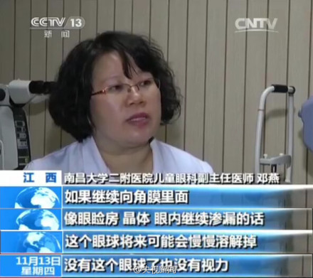 经救治,医生表示,男童右眼属于干燥剂灼伤,整个右眼结膜、眼睑肌肉都有不同程度受伤。导致男孩脸部水肿、脱皮,右眼结膜、眼睑肌肉被灼伤,并且有失明的可能。