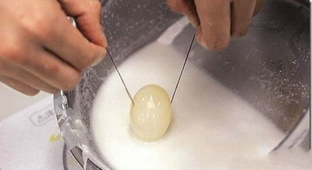 7)到这一步一个假的鸡蛋快要成型了,看起来和真鸡蛋一样。整个过程不超过5分钟,比母鸡下蛋的速度都要快,这是要逼母鸡下岗的节奏~