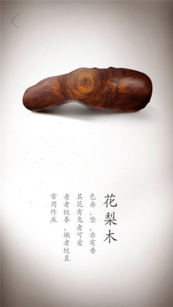 紫檀是珍惜物种,生长周期非常漫长,近千年方能成材。它的边材狭窄,木质坚硬,内部结构紧密,密度大落水即沉,心材呈鲜红色或是桔红色,长期暴露于空气中后颜色会变深,出现紫红褐色的条纹。紫檀主要还可分为大叶紫檀和小叶紫檀。