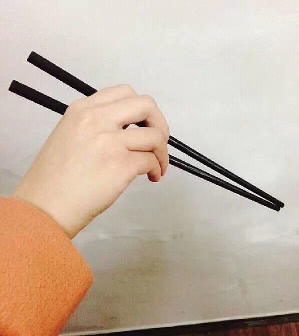 5、握笔式,即以大拇指和食指顶着上方筷子,如同握钢笔,使用时,筷子会交叉;