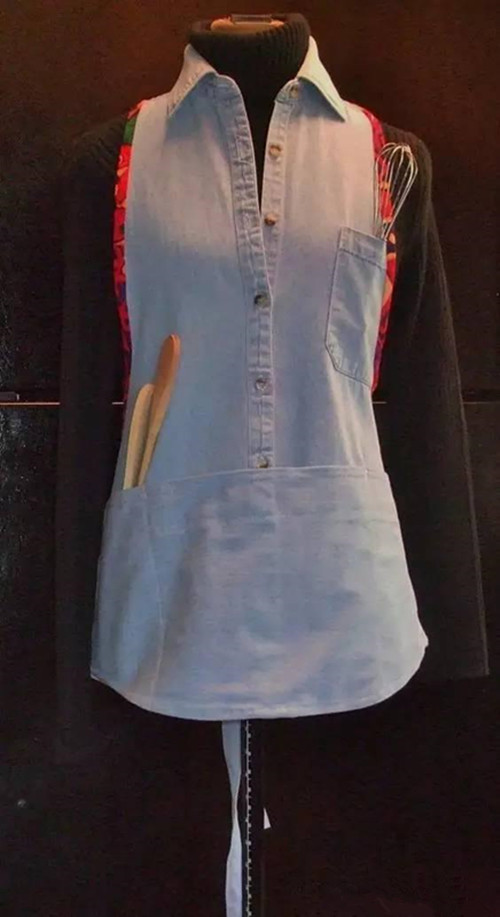想要围裙不用买 ,家里的旧衣服堆积如山,随便拿几件旧衣服或裤子出来,改造一下,就有了几条围裙够你日常所用啦,而且连衣裙都可以直接进行剪裁,改出优雅的围裙,围裙的前面还可以自己多缝上几个口袋,在厨房工作时顺便放一下刀叉勺子之类的小东西哦。