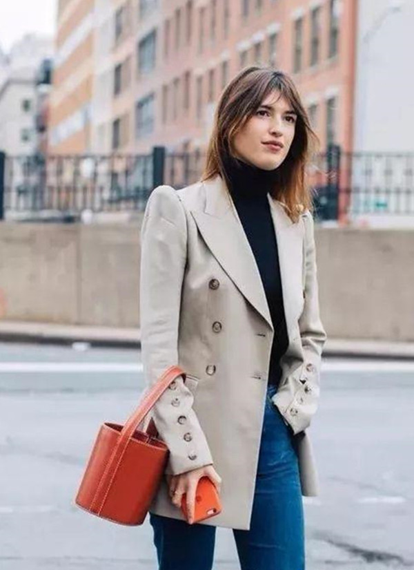 但是高领的入门门槛比较高,脖子不够长,脸不够小的小个子,最好外搭一件V领的大衣外套。