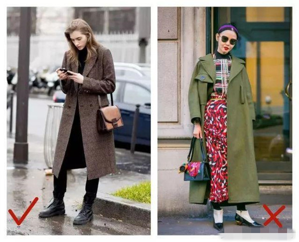 选择裙子内搭的时候,裙长要短于大衣长更显高。记住要内短外长!