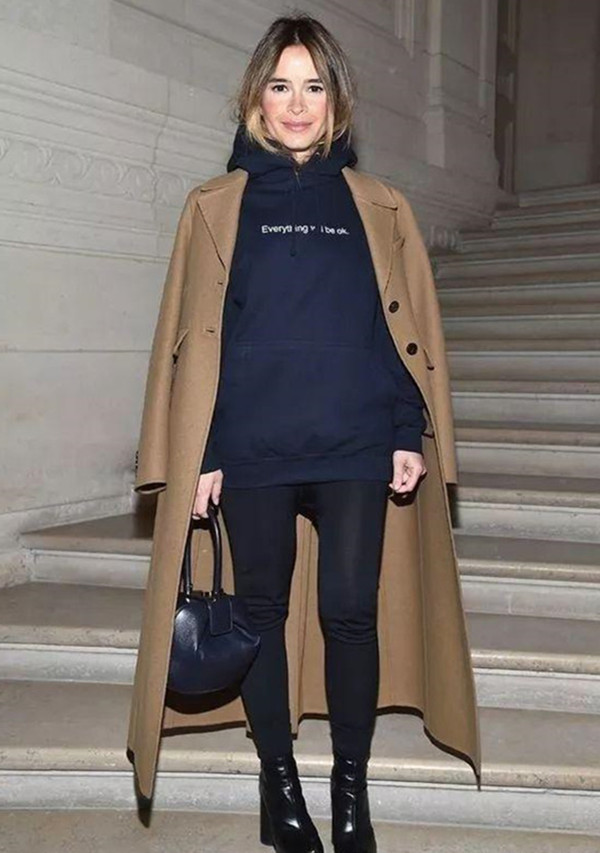 但是内搭上衣尽量不要选择太宽松的款式,松松垮垮反而横向膨胀。比如最近大火的卫衣搭配大衣,小个子女生还是选择稍微修身一点的款式比较好。