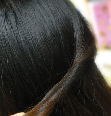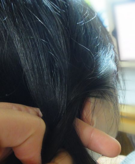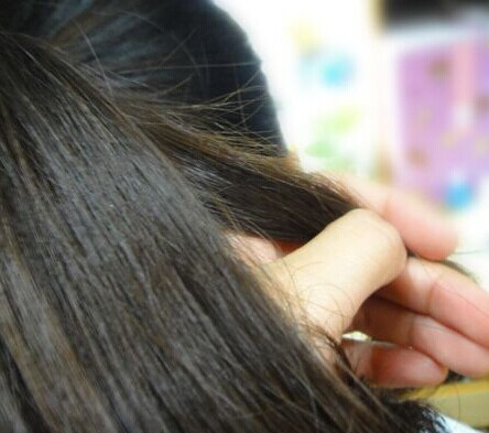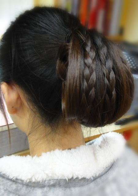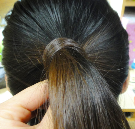 第三步:将取出的头发像发圈一样绕在头上,然后用U行夹固定住。