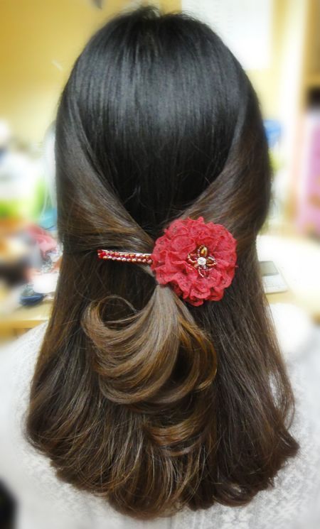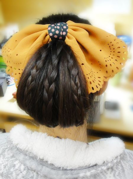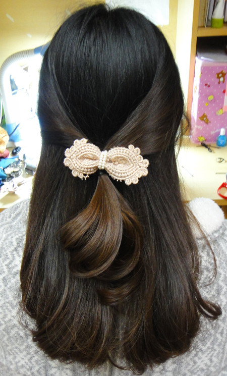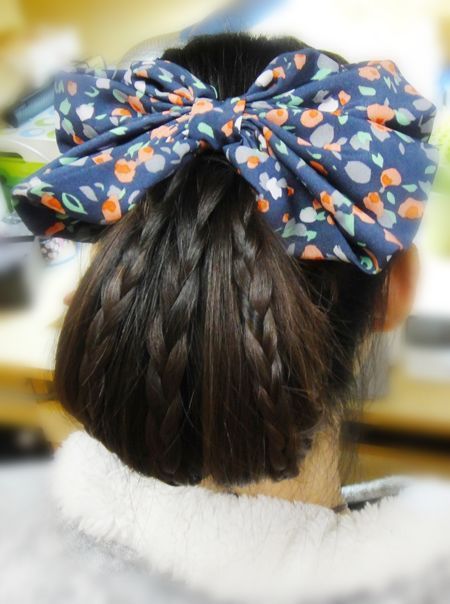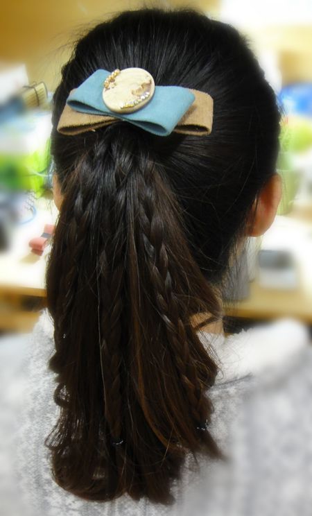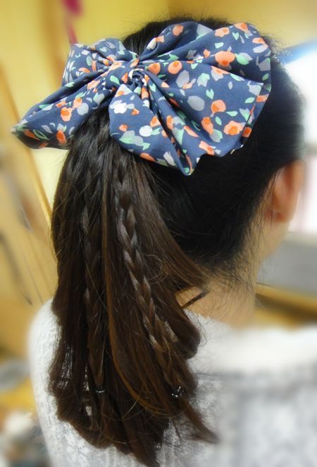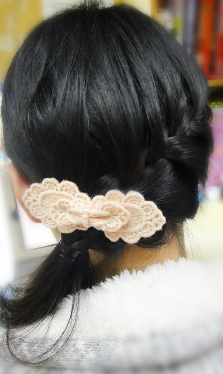 配上喜欢的发饰就可以了哦,粉粉滴!