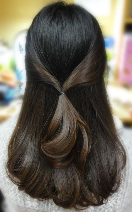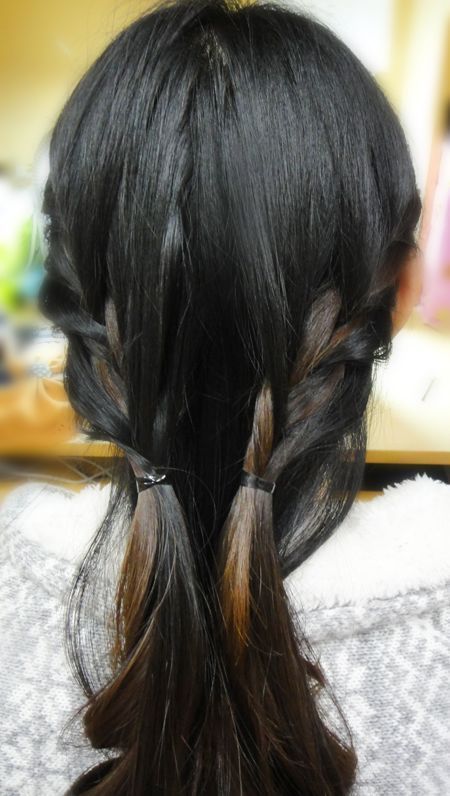 最后一步是把两侧的头发用小皮筋扎起哦。